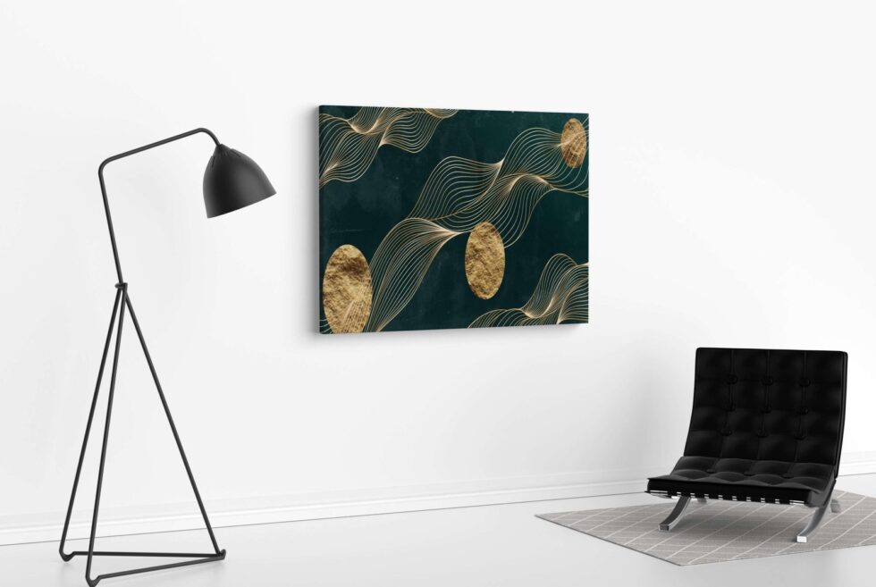 A golden round frame masterpiece that adds depth and beauty to any space.